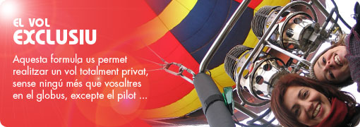 Amb el VOL EXCLUSIU VIP, podeu viure el vol amb més intimitat, volant només, entre dos, o entre amics o en família, fins a un màxim de 8 persones a bord, el globus és totalment vostre. Quan sou només 2 passatgers a la cistella, el pilot us pot ensenyar les bases de vol en globus i us deixa pilotar-lo. En aquest cas, pugeu en un globus de petita grandària, un model que s'utilitza en competició, més àgil i més dinàmic, sensacions garantides!